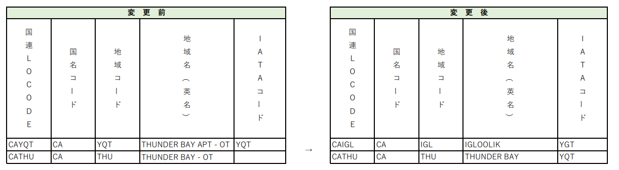 各種コードの最新の変更情報を掲載しています。当該港湾をご利用の際は、ご確認願います。