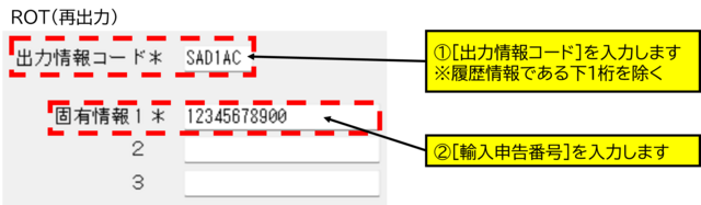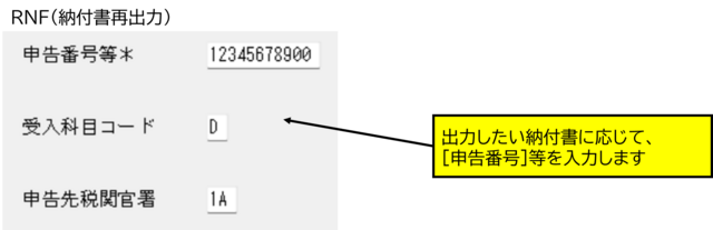 ※注意事項:入力項目のうち申告番号等欄は、再出力する情報に応じて、入力する値が異なります。