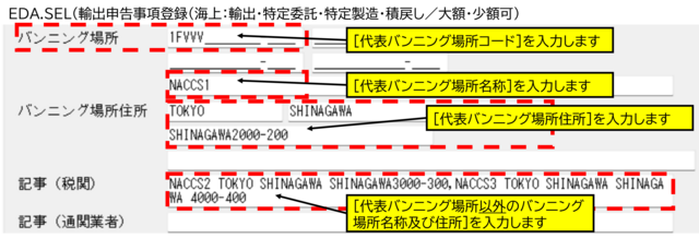 EDA(輸出申告事項登録)業務のバンニング場所欄は、どのように入力したらよいでしょうか。