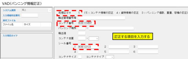 また、個数、重量、容積等の項目については、VAD11「処理区分:3」→VAD業務で訂正が出来ます。