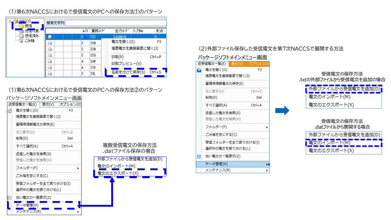 (1)第6次NACCSにおける受信電文のPCへの保存方法