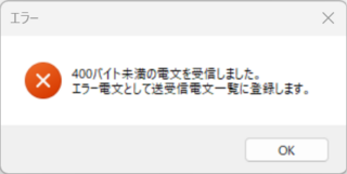 業務送信時にエラー(400バイト未満の電文を受信しました。エラー電文として送受信電文一覧に登録します。)が出力されます。