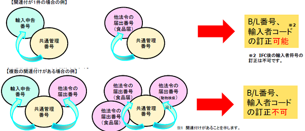 - 共通管理番号にB/L番号輸入申告番号&届出番号が関連付けされている場合はB/L番号.輸入者の訂正は不可です。